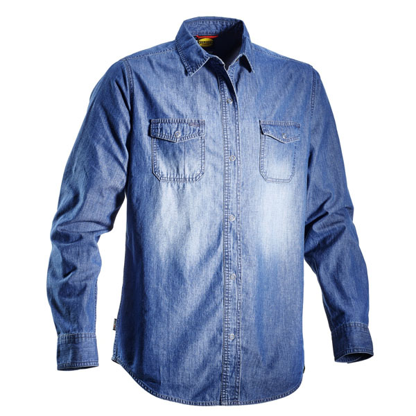 Cotone Denim 100% g/mq 160 Bottoni a pressione – 2 taschini – Portamatita Rinforzo su gomiti Coloreblu effetto lavato