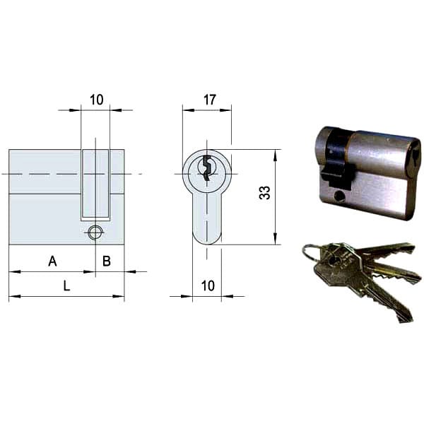 Mezzo cilindro ottone nichelato Perni ottone e acciaio cementato Camma acciaio sinterizzato regolabile 8 posizioni 3 chiavi 01070-10-1 cod.82054