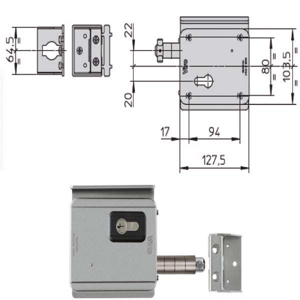 Elettroserratura V 12 porte ferro da applicare Zincata – Catenaccio arpione rotante acciaio inox Reversibile – Entrata 50 Applicazione cancelli scorrevoli automatizzati Cilindro incluso Misure mm 127,5×103,5×37