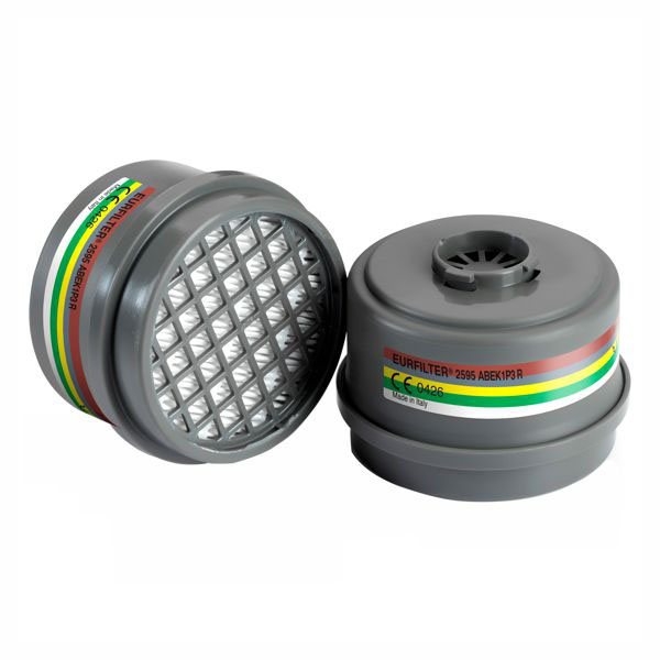Protezione contro gas e vapori organici e inorganici, gas acidi, anidride solforosa, ammoniaca e suoi derivati, polveri, fumi e nebbie Utilizzabili su maschere Vulcano Attacco baionetta EN14387:2004 EN143:2000 A1:2006