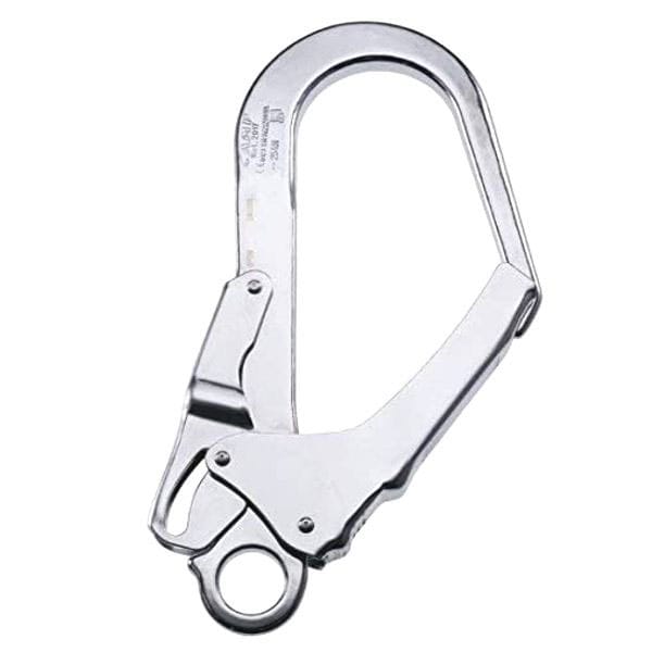 Moschettone acciaio carbonio finitura zincata Chiusura a molla con leva posteriore Lunghezza mm 220- Apertura mm 53 – Peso g 515 Resistenza Kn 20 -Norme EN 362