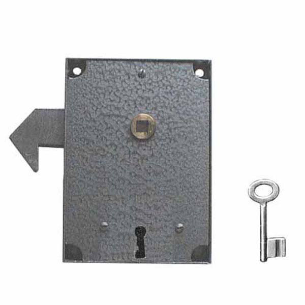 Serratura martellata grigia a gancio Applicare cancelli scorrevoli Quadro maniglia mm 8 Scatola mm 100×140 – Entrata mm 55 Chiave tipo patent