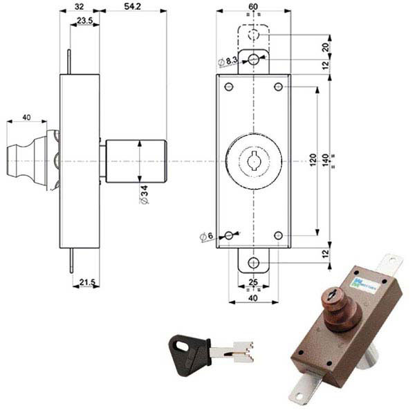 Ferroglietto verniciato marrone – Applicare legnoApertura interna/esterna pompa Chiusure verticalicorsa mm 20 Scatola mm 60×140 – Entrata mm 30 Cilindro fisso a pompa mm 50 diametro mm 34 Aste non incluse 3 chiavi art.92105