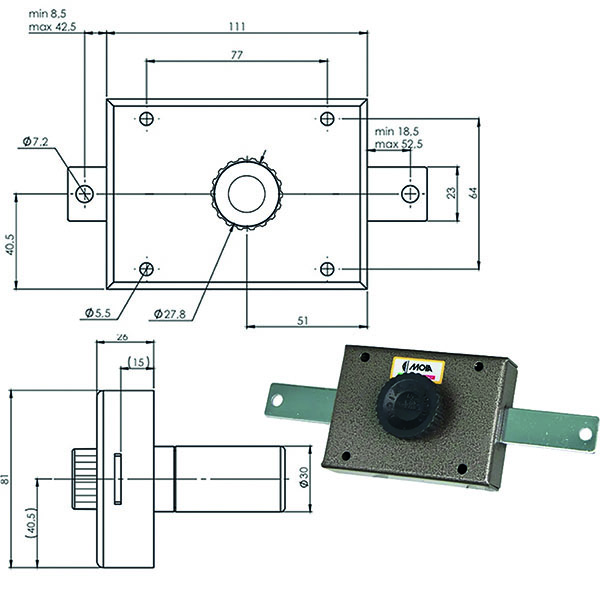 Ferroglietto verniciato marrone – Applicare legnoApertura interna pomolo autobloccante Apertura esterna pompa diametro 30 lungh. mm 60 Chiusure verticali corsa mm 20 Catenacci laterali mm 23×20 corsa mm 21 Scatola mm 60×160 – Ent 5 chiavi punzonate+ 2 chiavi cantiere + chiave ONE/off x disattivare chiave cantiere Aste non incluse