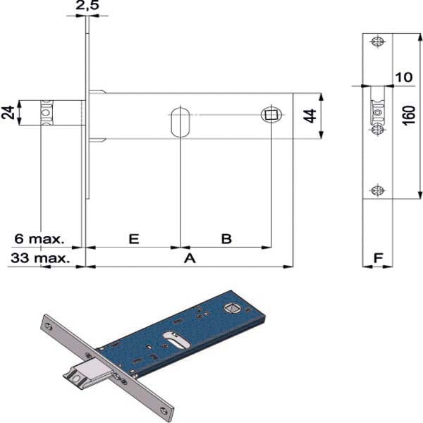 Serratura zincata infilare alluminio fasce Scrocco catenaccio incorporato reversibile Q8 Scrocco lega nichelata antirumore 2 mandate – Misura scatolamm 163×44 Misura frontale inox 16×160/22×160 – Entrata 80 Cilindro non incluso
