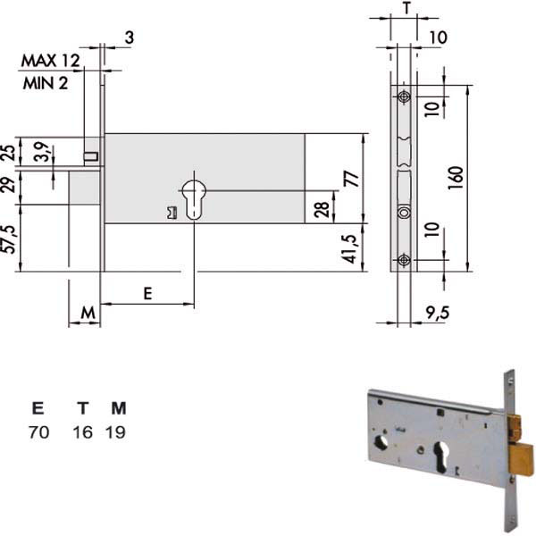 Serratura fasce alluminio infilare Rullo regolabile Catenaccio 2 mandate Zincata – Ambidestra Cilindro non incluso Scatola 77 – Frontale 16×160