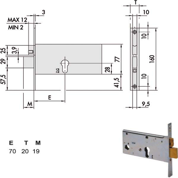 Serratura fasce alluminio infilare Rullo regolabile Catenaccio 2 mandate Zincata – Ambidestra Cilindro non incluso Scatola 77 – Frontale 20×160