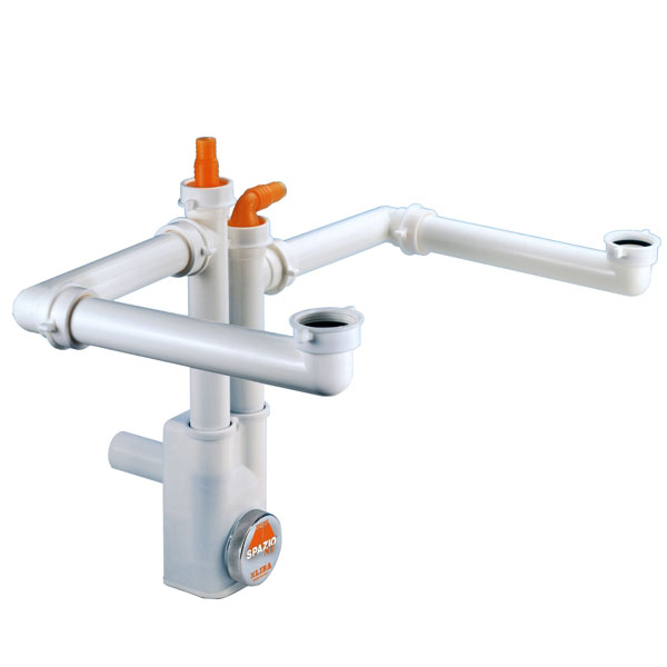 Polipropilene colore bianco 2 scarichi lavello attacco ghiera Scarico a muro mm 40 Tappo ispezione mm 76 Doppio attacco lavatrice portagomma